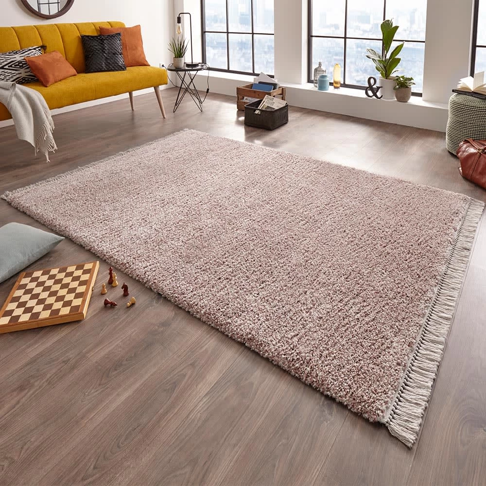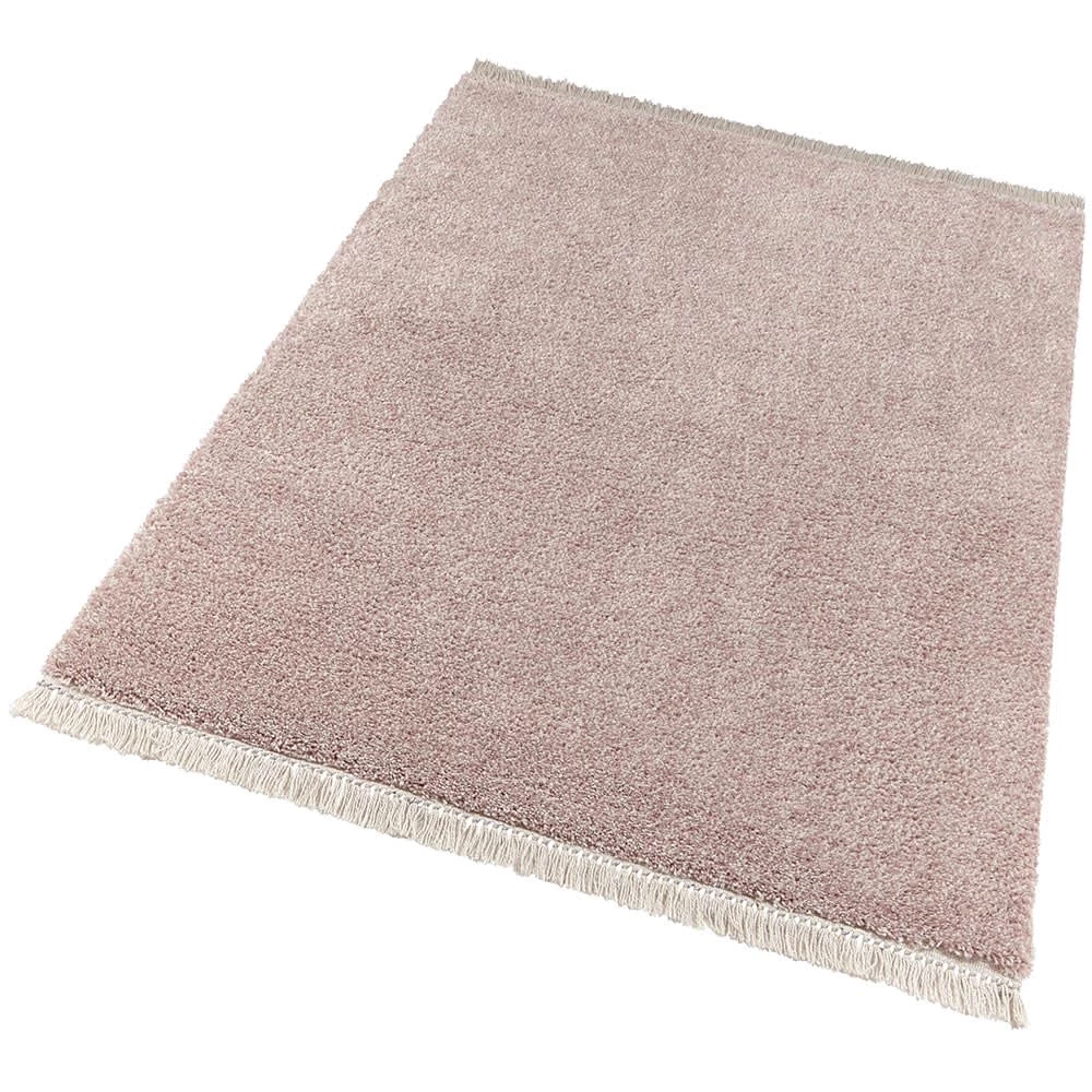 Hochflor Teppich Fransen Aloe Rosa Creme