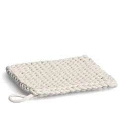 Gestricktes Küchentuch von „Solwang“ Dänemark. Liebevoll aufgerollt und mit einem Naturband, zusammen mit einem kleinen Schildchen zu einem hübschen Präsent gebunden. Auf dem Schild wird ein wenig über die Geschichte von Solwang berichtet.